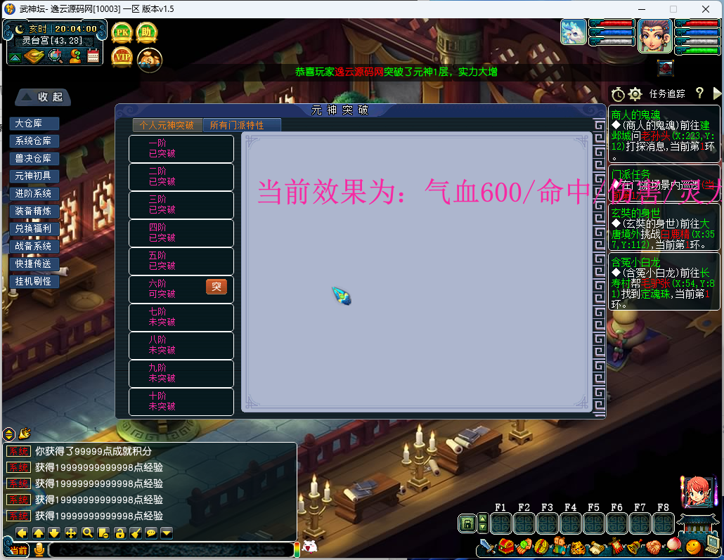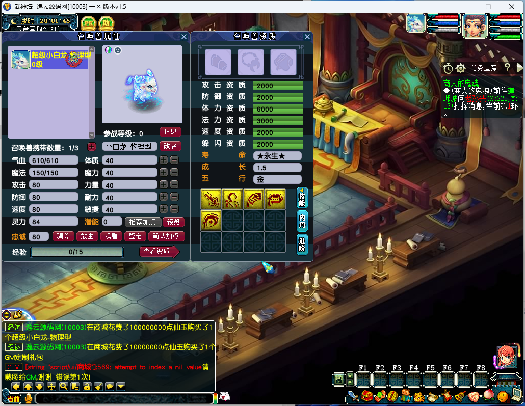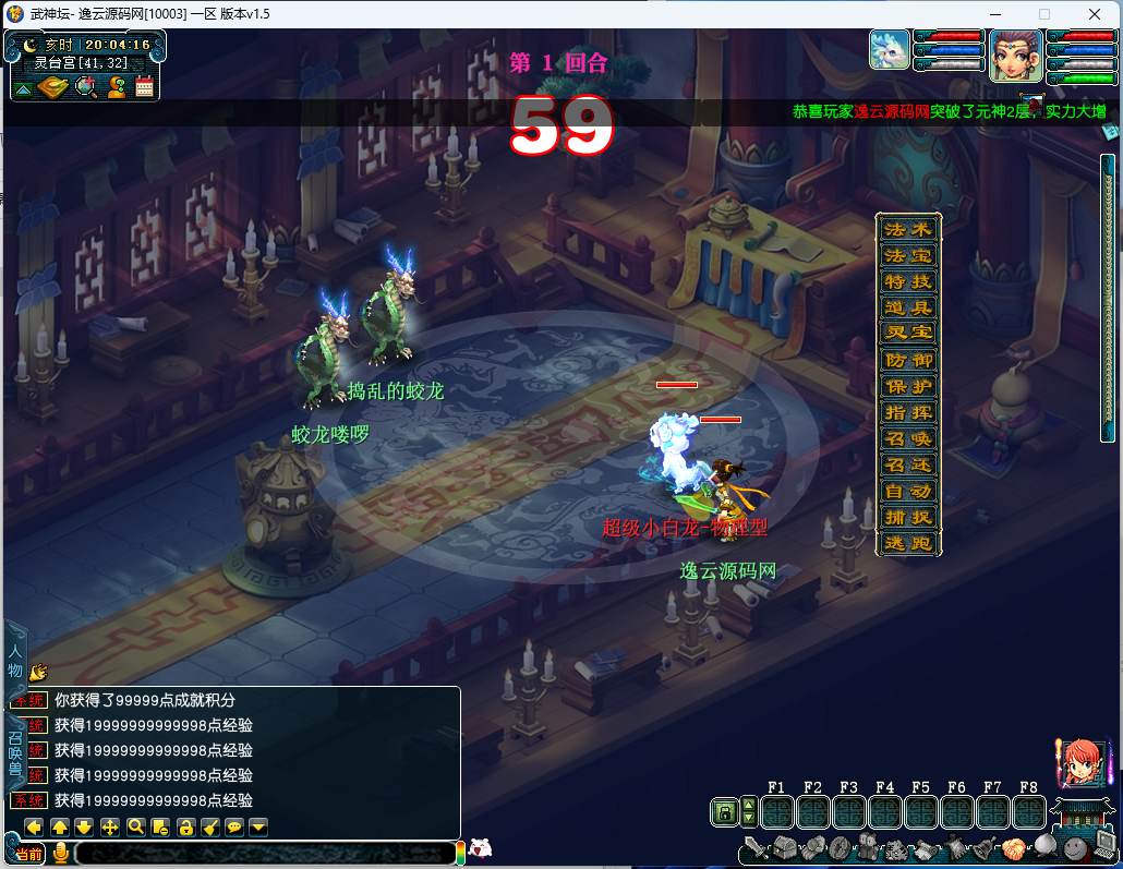 版本特色:带源码,内有助战假人,任务假人,擂台PK假人等,超级飞行棋,超级传送等,带任务剧情,元神突破,拓印等各种玩法丰富,配了局域网及外网教程。(注意:任何网单都存在BUG,追求完美的勿拍)